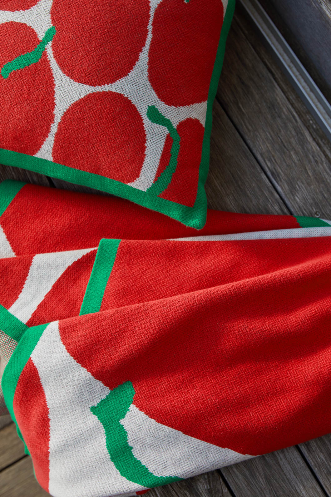 Cotton knitted cushion- measures approximately 45cm square- features exclusive gorman print- print placement may vary