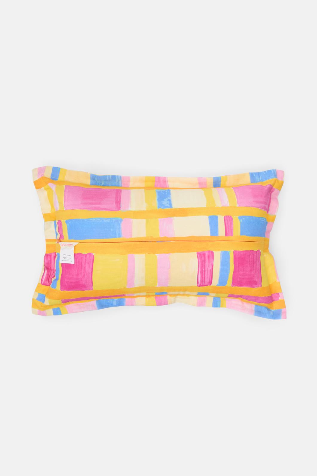 Printed cotton cushion- measures 50cm wide x 30cm height- features exclusive gorman print- print placement may vary