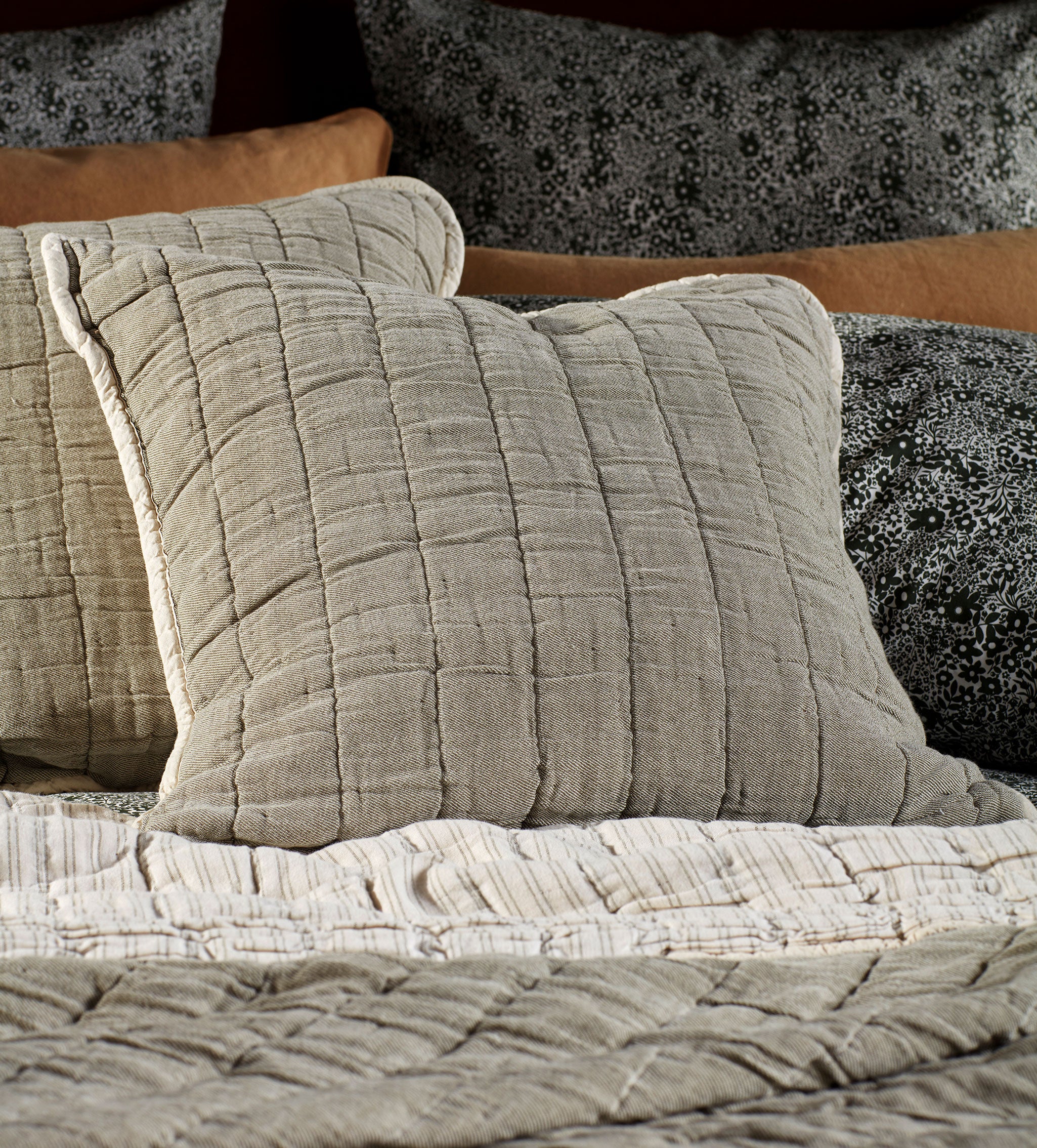 Woven with a chunky cotton yarn for a quilted look and feel and extra squishiness, the Vivienne Cushion Cover is laundered soft with rounded corners, a bound trim and a cleverly hidden zip. Measuring a perfect 50 x 50cm, this gentle green beauty will be the ultimate finish for a most stylish bed, especially if nestled up with our Vivienne Green Quilted Throw.