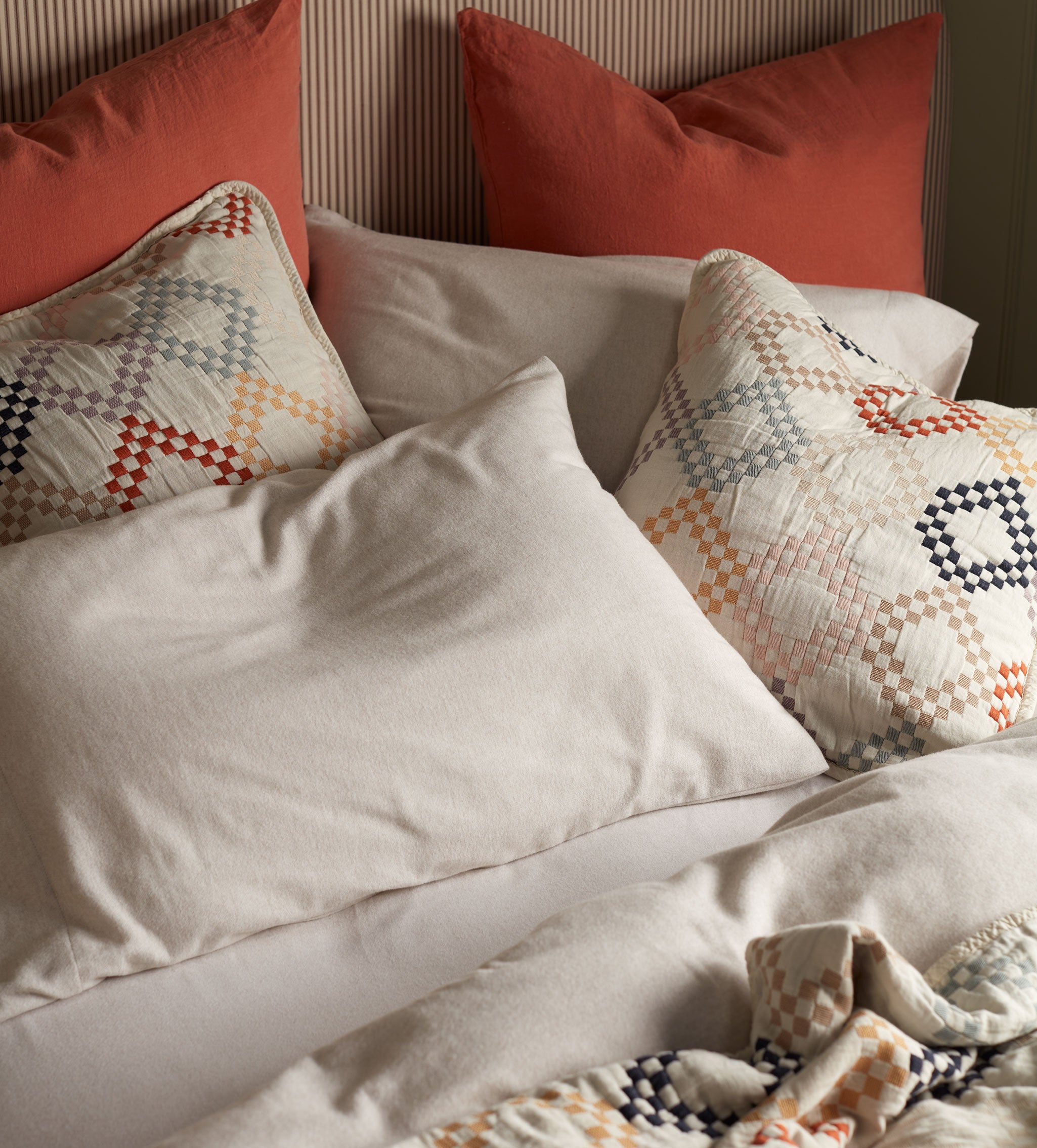 Our Jolene 100% Cotton Geometric Cushion Cover is vibrant and perfectly playful, with a mix of navy, mauve, teal, pink, and yellow squares set against a creamy off-white background. Crafted from soft and comfy cotton by our brilliant partners in Portugal, Jolene is a winning combination of cosy and eye-catching with a super soft, laundered finish to boot - the perfect partner for any bed or sofa.