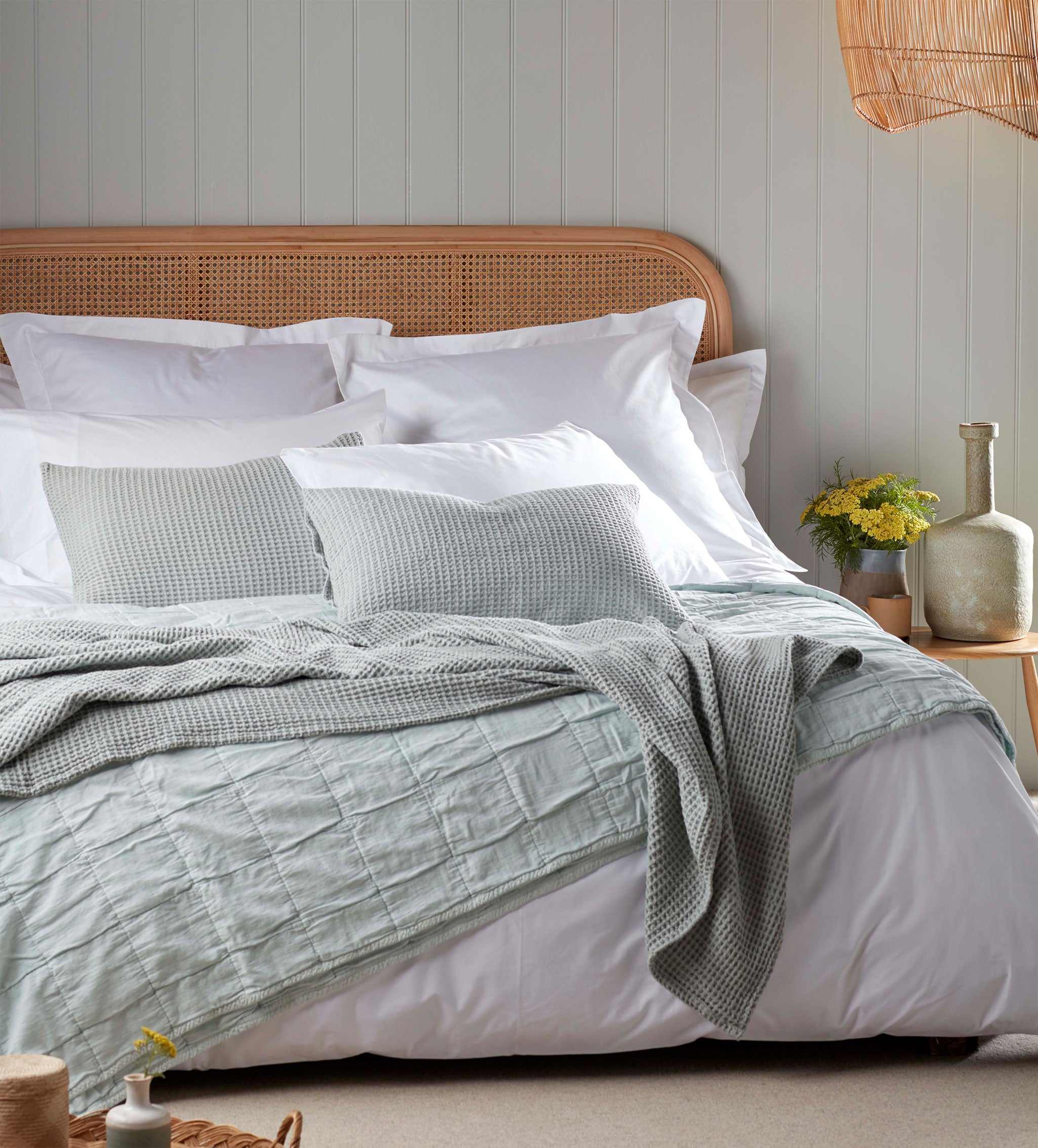 A must-have for your home, our Sage Big Waffle Cushion Cover brings a touch of cosiness to wherever you choose to pop it. Crafted in Portugal from top-notch 100% cotton yarns dyed a simple yet stunning shade of green (find styling inspo in our article), this timeless treasure has a gently textured waffle weave and 'soft-as-you-like' laundered feel.