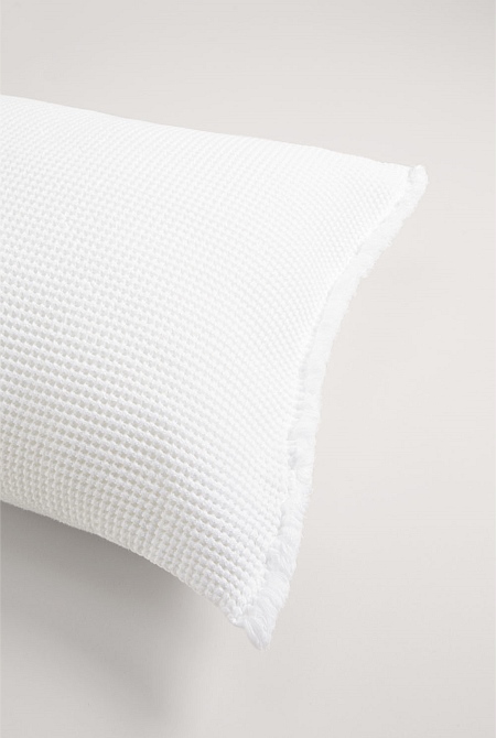 Woven in beautifully soft cotton, this cushion features a tactile waffle design and a raw edge.