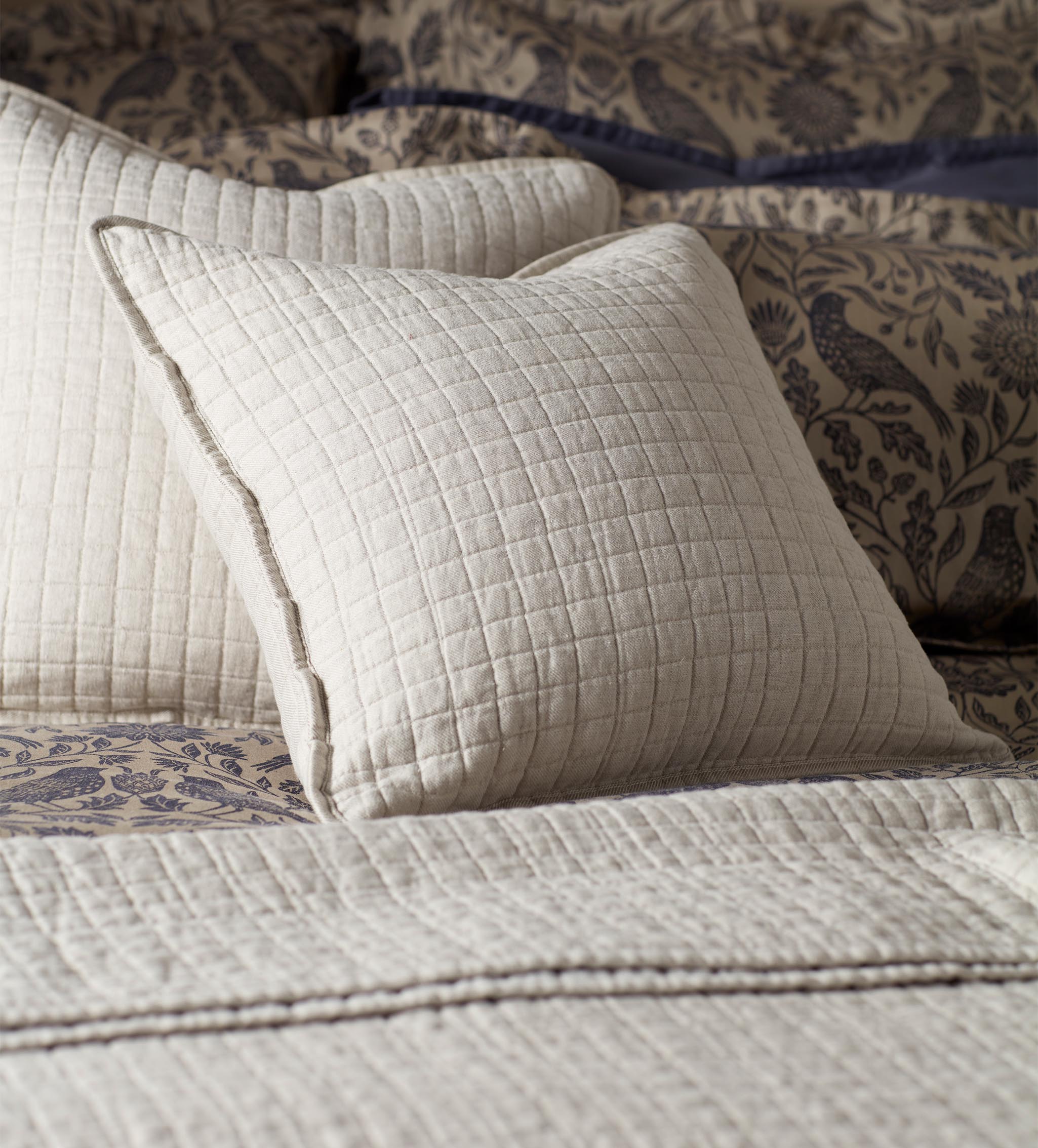 Natural Rebecca Cotton Linen Quilted Cushion Cover