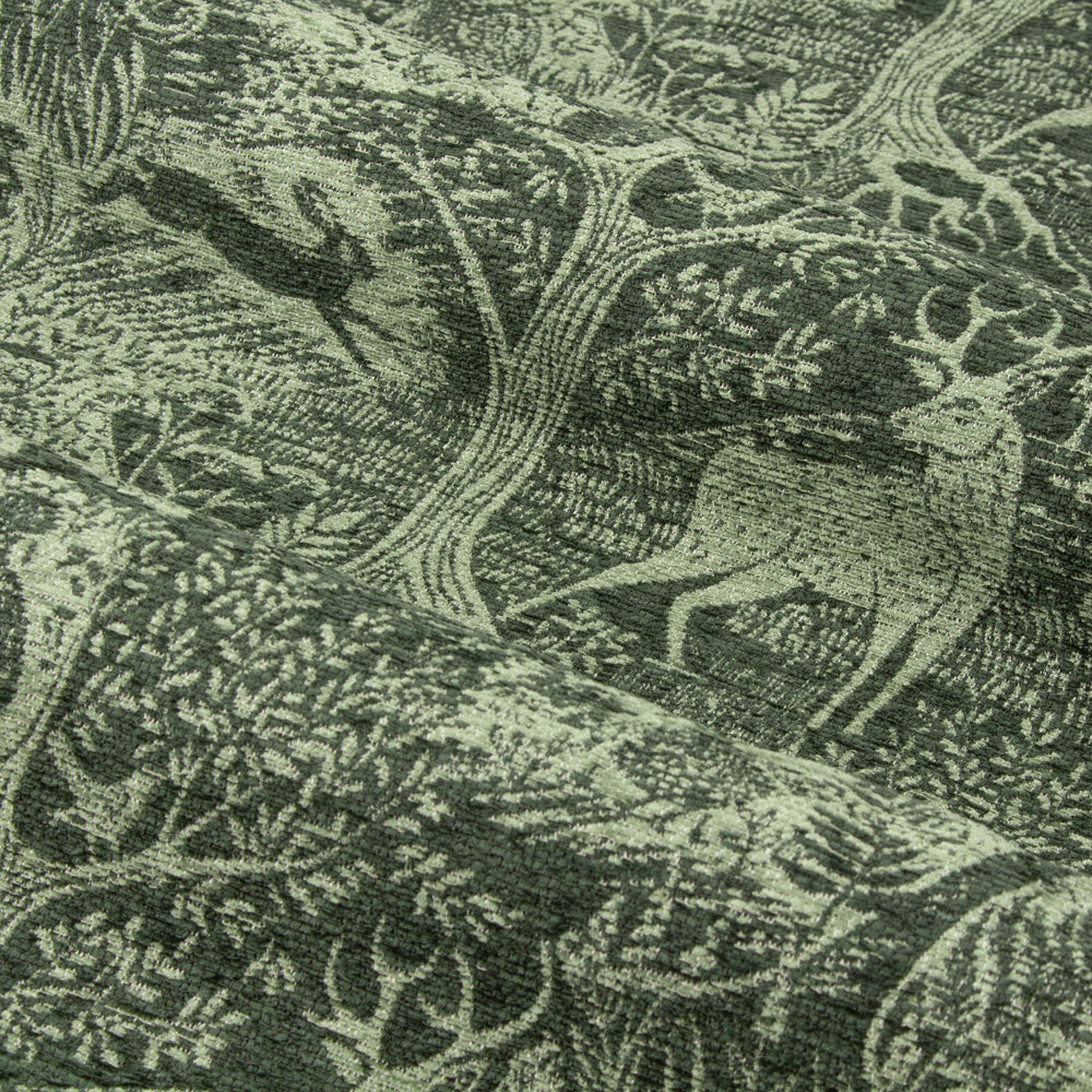 furn. Emerald Green Winter Woods Animal Chenille Eyelet Curtains. Animal. Chenille. Modern. Chenille. Polyester. 100% Polyester. Featuring a woodblock inspired pattern of woodland animals and trees, woven on a soft chenille jacquard fabric. Lined with room darkening qualities and finished with eyelet rings for easy hanging. Made with 100% Polyester, this fabric is super soft yet durable and does not stain easily. Pair with any product in our Winter Woods collection for a fully coordinated look. Jacquard. Chenille. Lined. Eyelet. Invite nature into your home with the stunning Winter Woods jacquard-lined curtains. Featuring a stunning woodblock-inspired design that depicts the beauty of forest animals and trees. Woven into soft chenille fabric, this amazing design is available in a range of bold jewel tones to add some vibrancy to your home. Relaxed.
