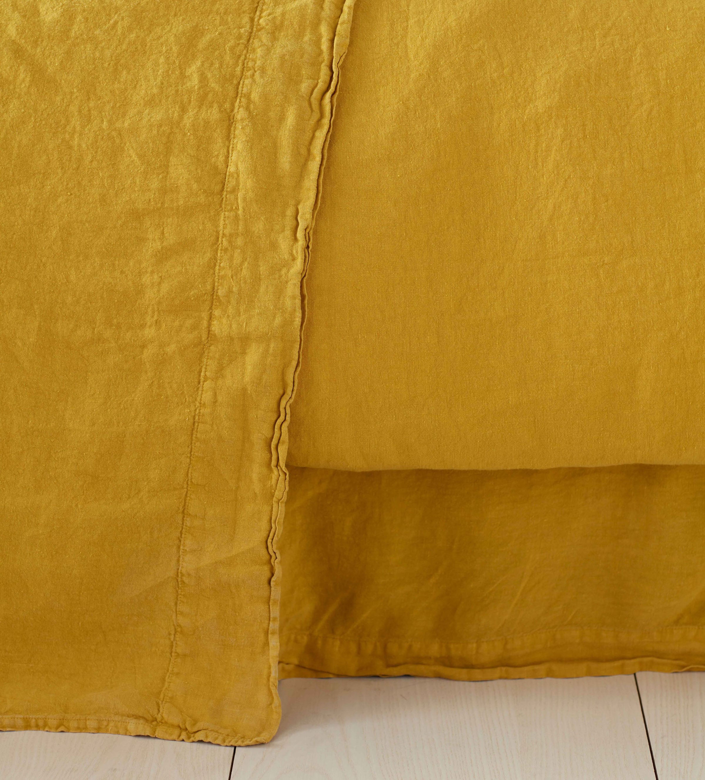 Bright and bold, the zingy ochre hues of our Mustard Yellow 100% Linen Flat Sheet will add a dash of spice to any bedroom scheme. Ideal for making neutrals pop, this linen flat sheet's woven from flax and finished at our factory in Portugal. All of our linen is laundered for exceptional softness and breathability.